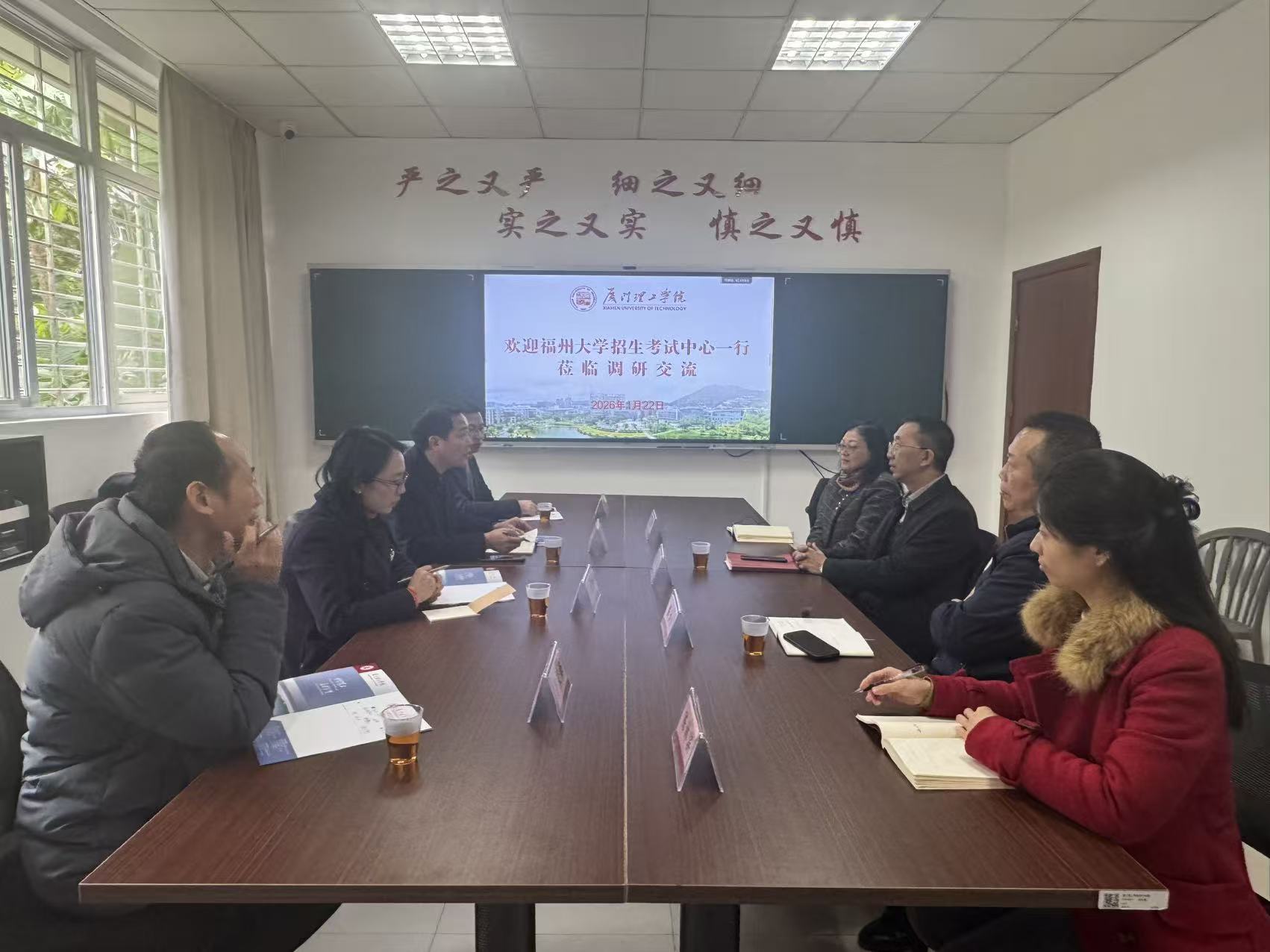 为深入贯彻落实“四下基层”工作制度,推动党建与业务深度融合,以高质量调查研究破解发展难题,赋能工作提质增效,1月22日,我校招生考试中心党支部书记钟光声带领部门党员骨干一行三人,秉持“走出去、学先进、促提升”的理念,先后赴厦门理工学院、厦门大学开展专题调研学习。此次调研旨在通过实地走访、深入交流,精准借鉴兄弟高校在招生考试领域的先进经验与创新实践,为我校优化全流程管理、提升招生宣传、考试组织及信息化建设水平注入新动能,夯实党建引领事业发展的实践根基。